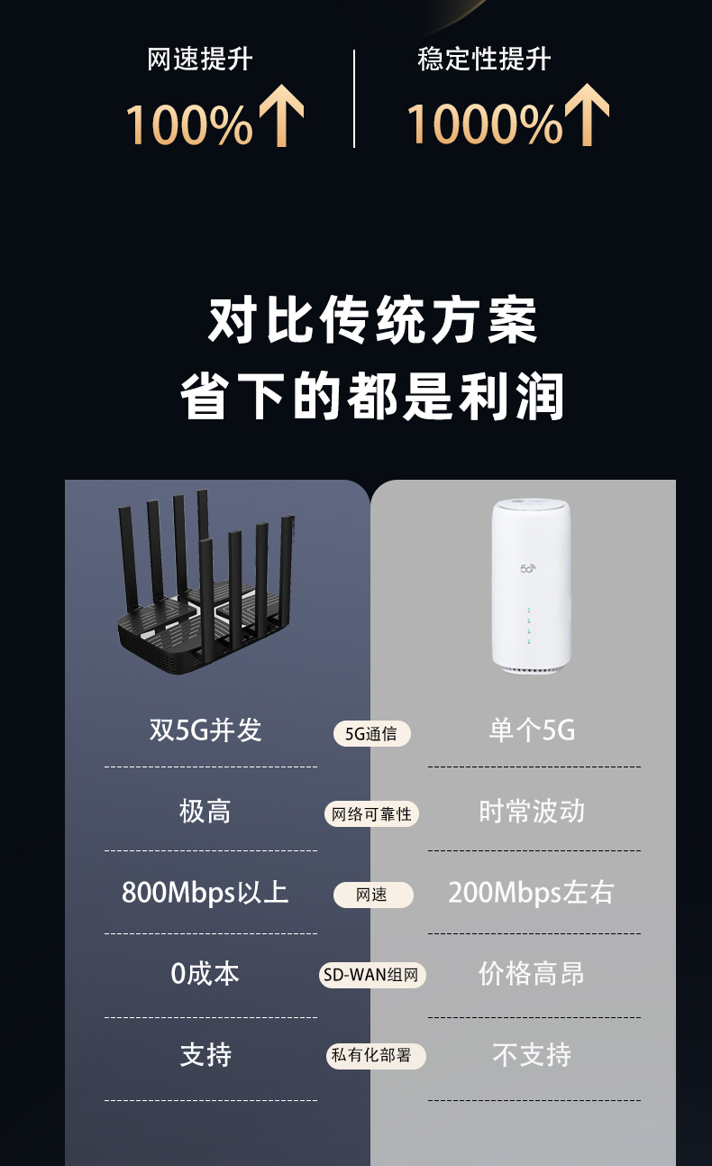 用于5G办公宽带,800M网速,双5G融合,更稳定更可靠。